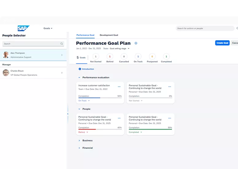 SAP SuccessFactors Performance and Goals is a robust employee performance management software enabling continuous feedback, goal setting, and performance evaluation aligned with organizational objectives. It offers performance management tools that support strategic talent development and enhance employee engagement and productivity.