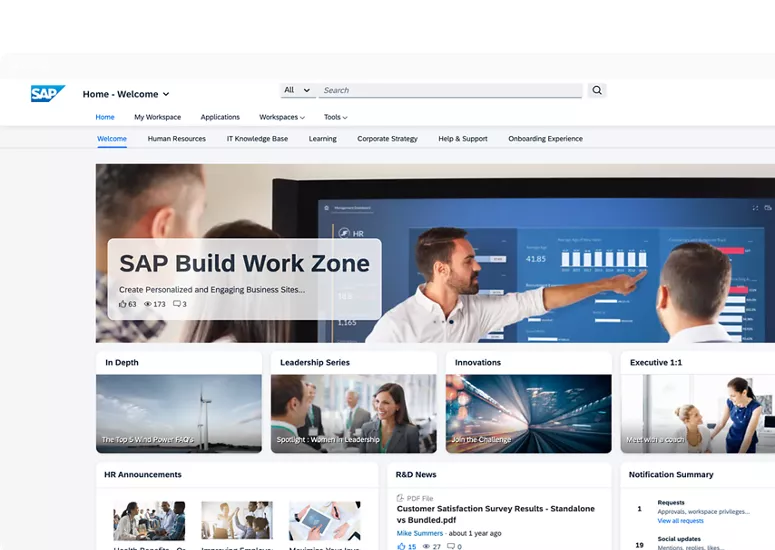 SAP SuccessFactors Work Zone is an integrated digital workplace solution designed to enhance employee experiences by providing a unified access point for all work-related tools and information. It enables personalized and engaging experiences through customizable workspaces, collaboration tools, and easy access to applications and content, all within a single platform.